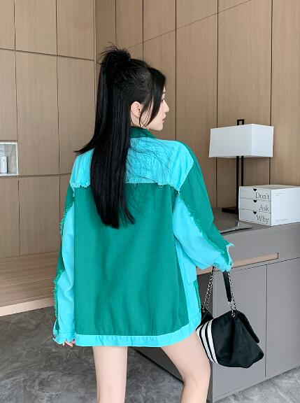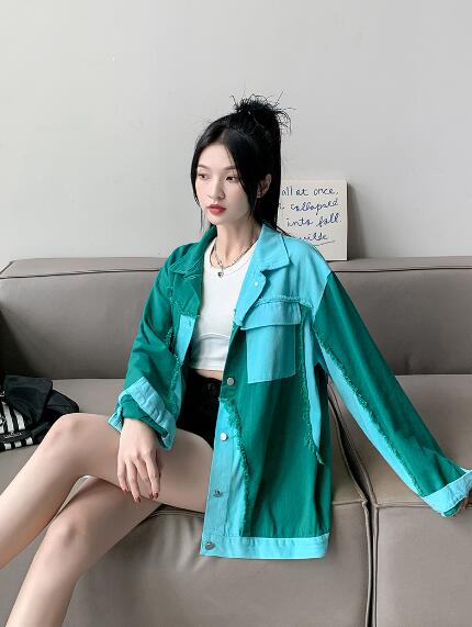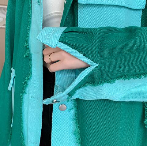 バイカラージージャンデニムジャケット長 レディースファッション 豊富な品揃え