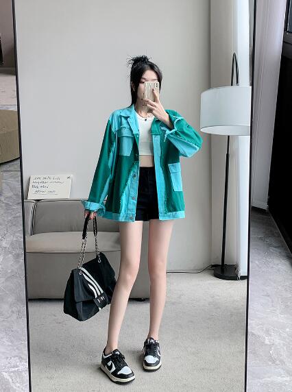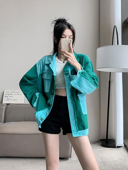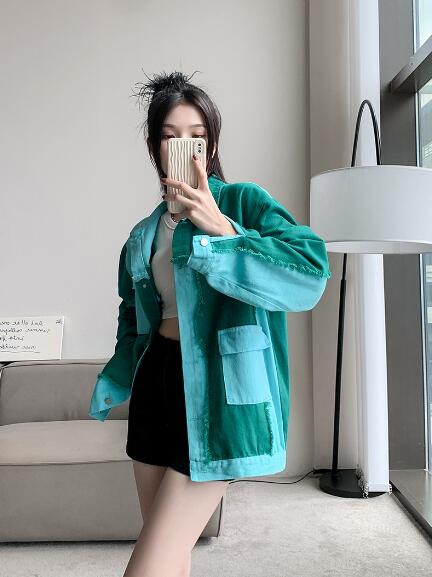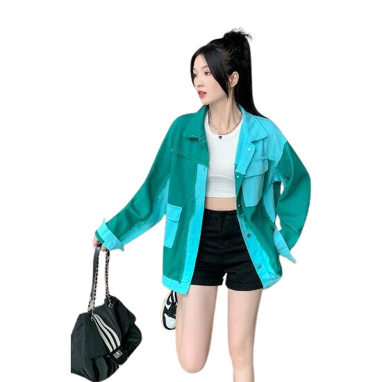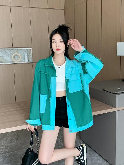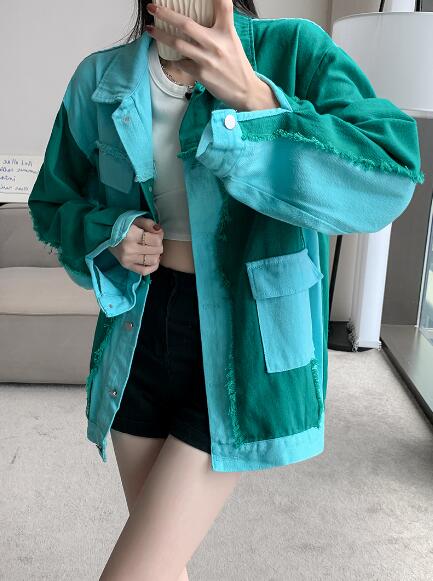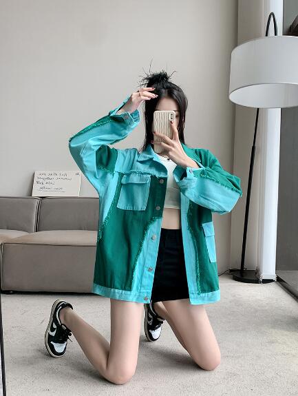 バイカラージージャンデニムジャケット長袖Gジャンシンプルボタンポケットビッグ大きいサイズダンス衣装ヒップホップHIPHOPレディースガールズ大人ストリートアウタージャンパー韓国おしゃれ