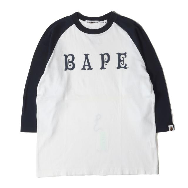 A BATHING APE ア ベイシング エイプ Tシャツ サイズ:M / 00s BAPEロゴ 7分袖 ラグラン Tシャツ / ネイビー ホワイト / トップス カットソー 【メンズ】【中古】【K4503】