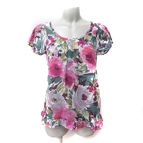 【中古】ジルスチュアート JILL STUART シャツ ブラウス プルオーバー 半袖 花柄 S マルチカラー /YI レディース