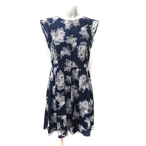 【中古】インデックス INDEX ワンピース ひざ丈 フレンチスリーブ 花柄 切替 M 紺 ネイビー /YI レディース