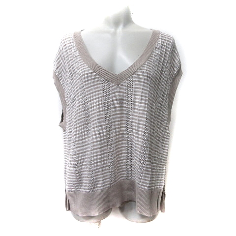 【中古】グローバルワーク GLOBAL WORK ニット カットソー フレンチスリーブ かぎ編み 総柄 ベージュ /YI レディース