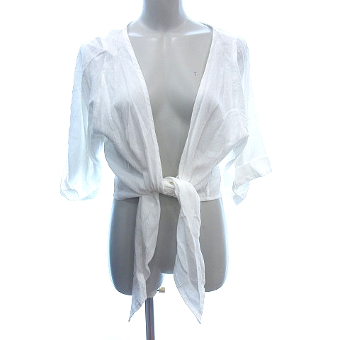 【中古】マウジー MOUSSY カーディガン シャツ ブラウス 前結び ロールアップ 七分袖 F 白 ホワイト /AU レディース