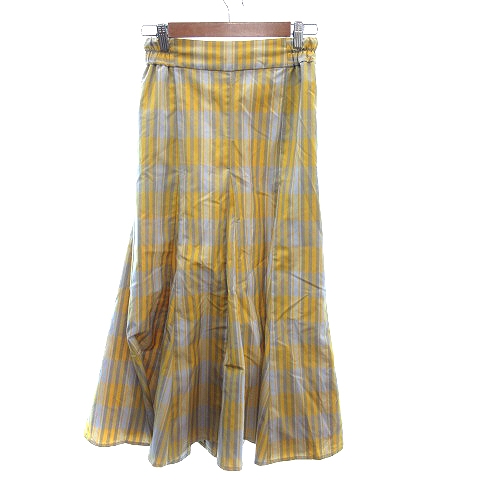 【中古】スタディオクリップ Studio Clip フレアスカート マキシ ロング チェック S 黄色 イエロー /AU レディース