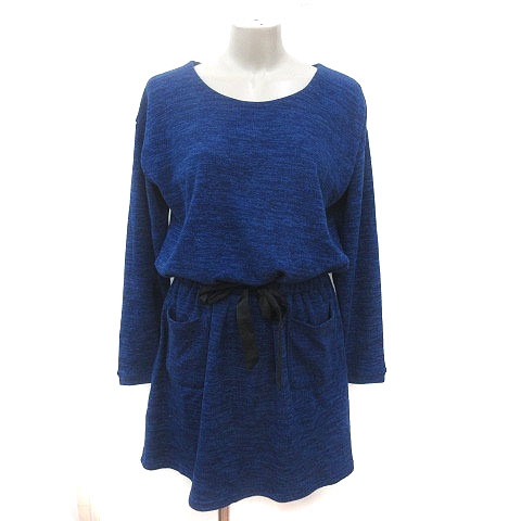 【中古】オフオン ofuon ニットワンピース ひざ丈 ウエストマーク 長袖 38 青 ブルー /MS レディース