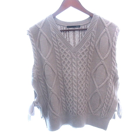 【中古】ヘザー Heather ニット ベスト プルオーバー リボン ケーブル F ピンク /AU レディース