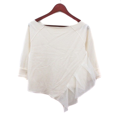 【中古】ルフトローブ Luftrobe カットソー クルーネック 七分袖 チュール フリル ウール 38 M 白 アイボリー