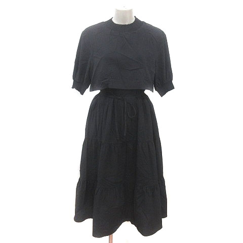 【中古】ダブルクローゼット w closet ワンピース ロング ウエストマーク 五分袖 M 黒 ブラック /MS レディース