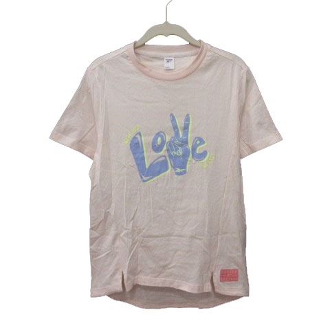 【中古】リーボック Reebok Tシャツ カットソー クルーネック プリント 半袖 M ベビーピンク 青 ブルー ? レディース