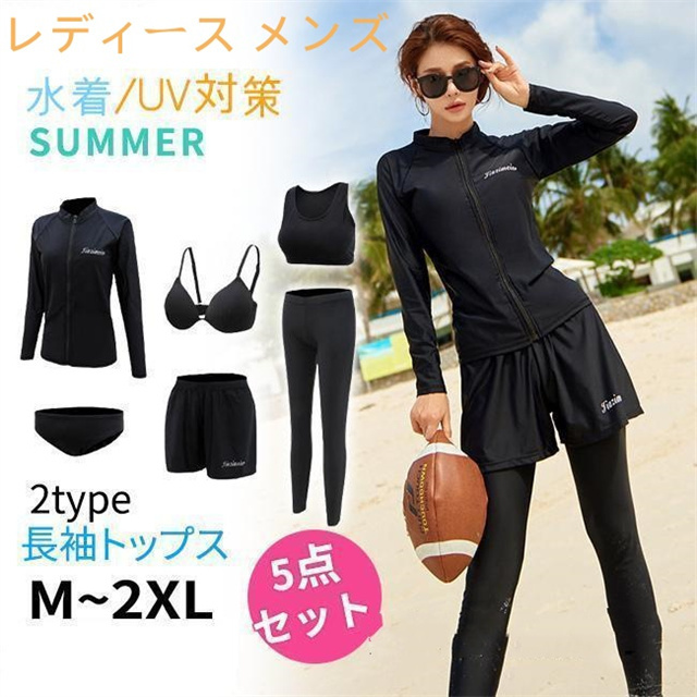 フィットネス水着レディース メンズ ラッシュガード セパレート 長袖 大きいサイズ 体型カバー めくれ防止 上下セット5点セット レギンス UV対策 長袖ラッシュパーカー ショートパンツ 送料無料