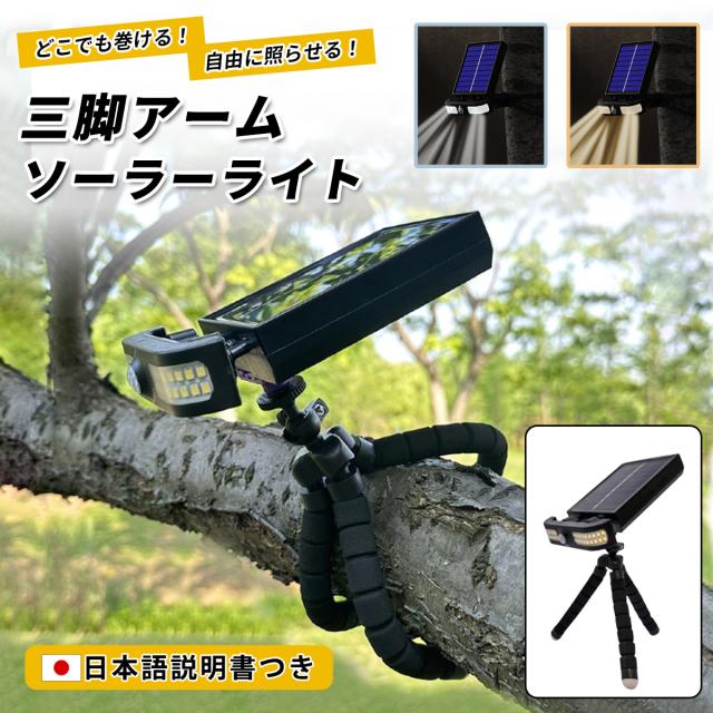 三脚 ソーラーライト 人感センサー フレキシブルアーム くねくね三脚付き LED ソーラー充電 USB充電 防犯 玄関照明 駐車場 ガーデンライト 電気代0 省エネ IP65 防塵 防水ライト 簡単設置 自動点灯