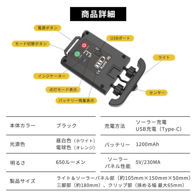 ■同梱品:ライト本体、三脚、Type-C USBケーブル、日本語説明書