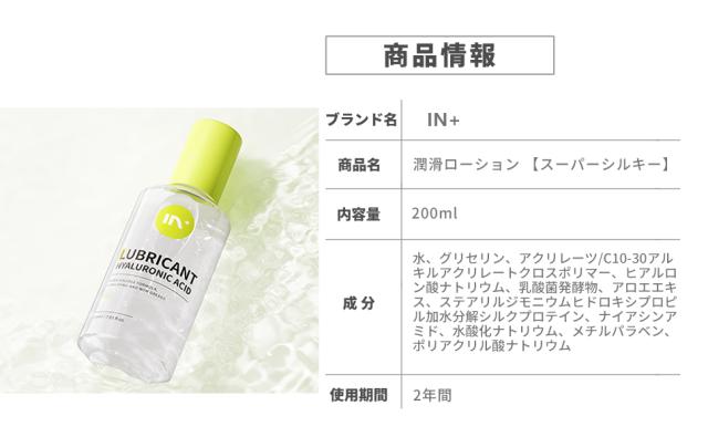◎【スーパーシルキーな潤滑ローション】IN+潤滑 ローション、アロエベラジュースとヒアルロン酸が高濃度で含まれています、潤滑ローションをよりデリケートでシルクのような肌触りにし、潤滑効果を長持ちさせ、効果的に保湿すると同時に肌を引き締める。化学原料は含まれていないので、非常に安全です。新しい潤滑体験をお届けします。【潤滑 剤 女性 おすすめ/潤滑 ゼリー 男性 用 おすすめ】