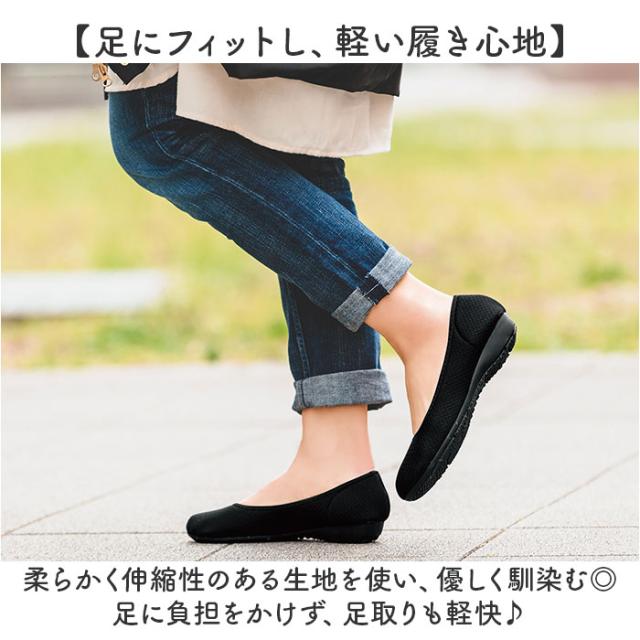 | 商品説明 | 【いつでも快適なお出かけをサポート】 ・気持ちよくお出かけ!日本製「eclaTstyle ラク楽カジュアルパンプス」。 【足にフィットし、軽い履き心地】 ・柔らかく伸縮性のある生地を使い、優しく馴染む◎足に負担をかけず、足取りも軽快♪ 【脱ぎ履きも手間取らずラクチン】 ・程よいゴム絞りで、履きやすさ抜群。足入れも脱ぐ動作もスムーズで、外出先でも慌てない! 【締め付けを感じずストレスフリー】 ・トゥ部分のアーチは、一般的なラウンドトゥよりも広く設計。締め付け感を軽減。 【清潔を保てるインソール】 ・インソールには、抗菌・防臭効果をプラス。パンプス内の不快なニオイを抑え、菌の繁殖も防ぐ◎ 【歩きやすいフラットシューズ】 ・前後差を抑えたフラットソール。長時間歩いても足が疲れにくいのがポイント。 【コーデを選ばずヘビロテ確定】 ・装飾のないシンプルなデザイン&落ち着きのあるカラー。どんなスタイルにもマッチ! |