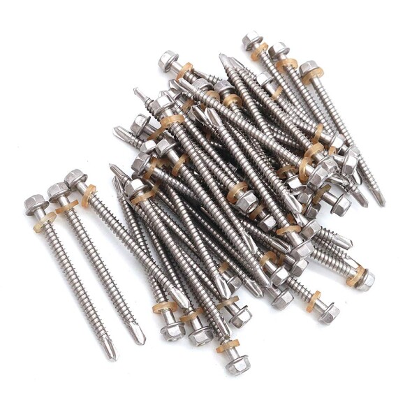 50個のM5.5 70mmセルフドリルタッピングネジ六角ワッシャーヘッド。