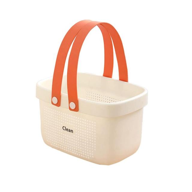バスバスケット バスケット 手提げ お風呂収納バスケット浴室用 収納バスケット バスルーム ハンドル付き 水切りかご ランドリー収納 シャンプー 化粧品 多機能 収納かご 小物収納 省スペース 便利 ホワイト (オレンジホワイト)