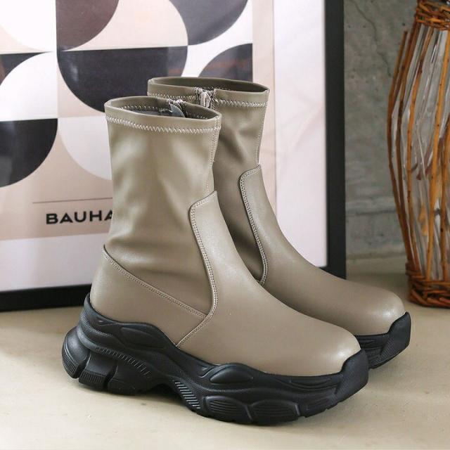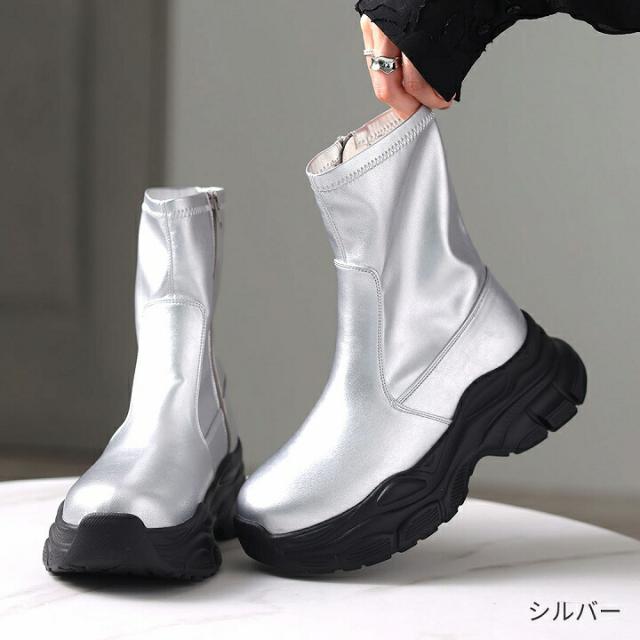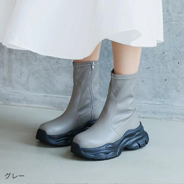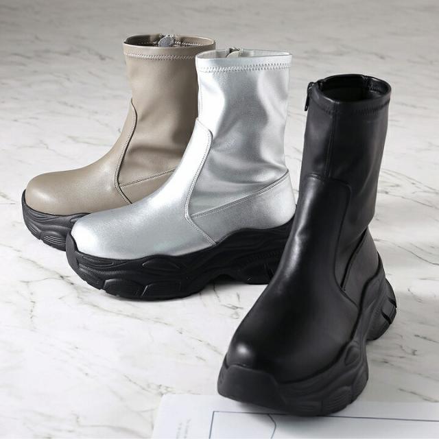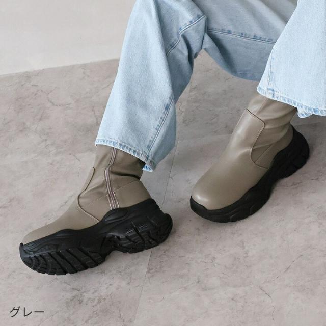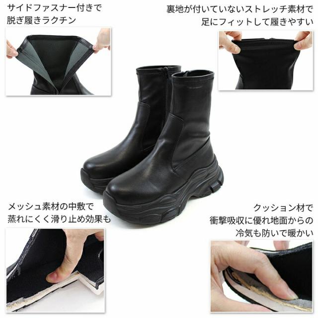 ストレッチ ショート ブーツ レディース ショートブーツ 厚底 ボリュームソール スニーカーブーツ 痛くない 歩きやすい 疲れない ブラック 黒 グレー シルバー 柔らかい 履きやすい 大きいサイズ 小さいサイズ 歩きやすい 走れる 疲れない 走れる 防寒 立ち仕事 オール 幅広 甲高 長時間 疲れない 外反母趾 22cm 22.5cm 23cm 23.5cm 24cm 24.5cm S M L かわいい 可愛い おしゃれ 秋 冬 秋冬 20代 30代 40代 50代 旅行 帰省 レジャー Minkyme Minky me