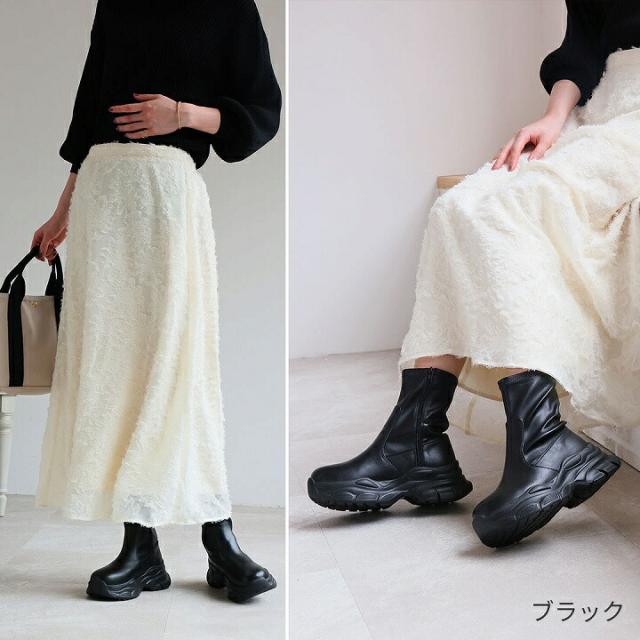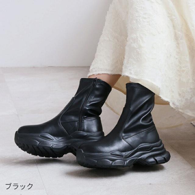 ブーツ レディース 冬新作 予約 VIVIAN ストレッチ ショートブーツ 厚底 ボリュームソール スニーカーブーツ ブラック 黒 V5351AW 爆買