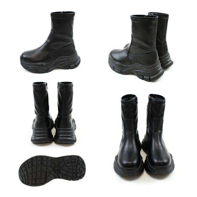 【全品10%OFFクーポン】 ブーツ レディース 秋新作 冬新作 VIVIAN ストレッチ ショートブーツ 厚底 ボリュームソール スニーカーブーツ ブラック 黒 V5351AW スニーカーブーツ ZOZO