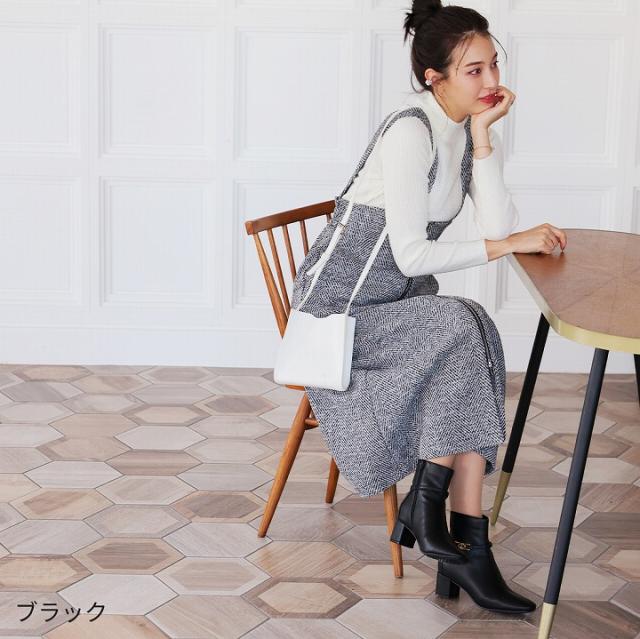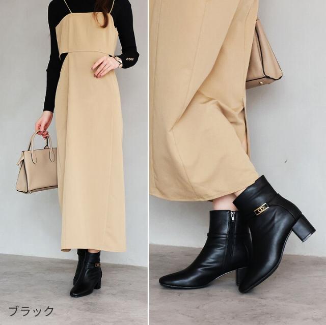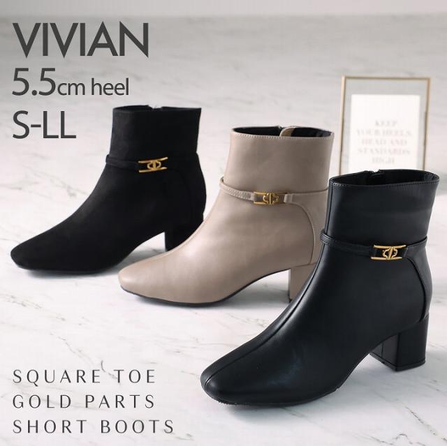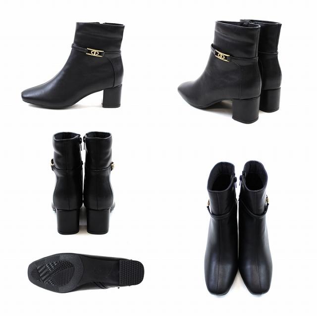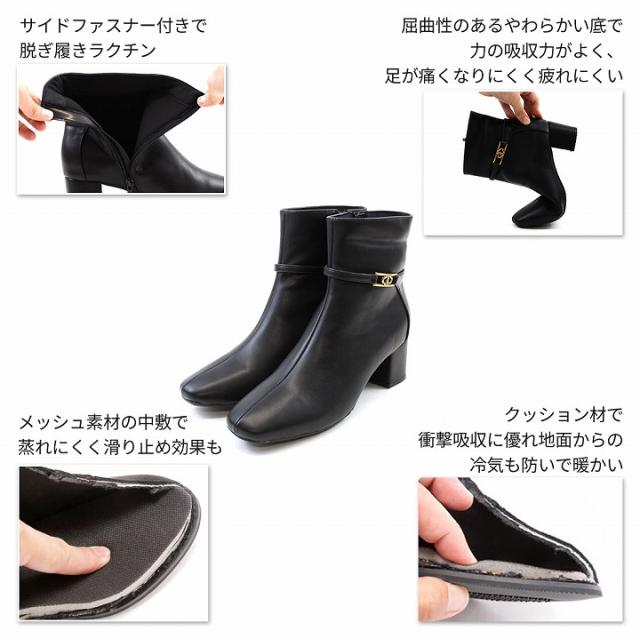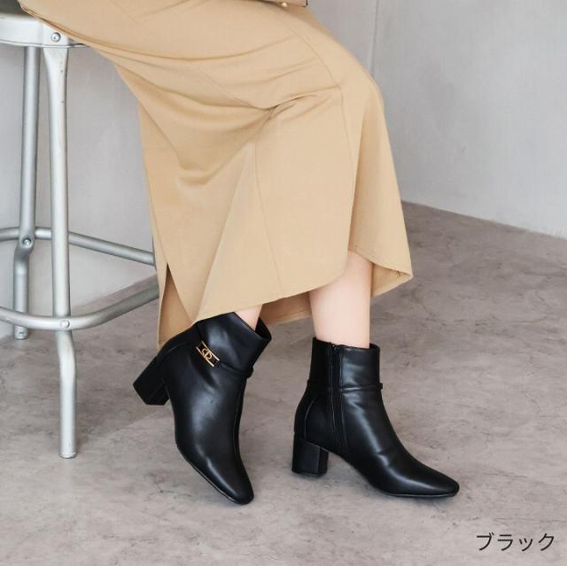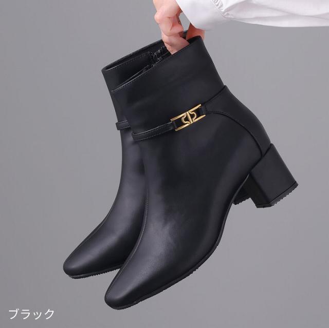 ブーツ レディース ショートブーツ モチーフ チャンキーヒール 5.5cm 歩きやすい 疲れない ブラック 黒 V6285AW 爆買