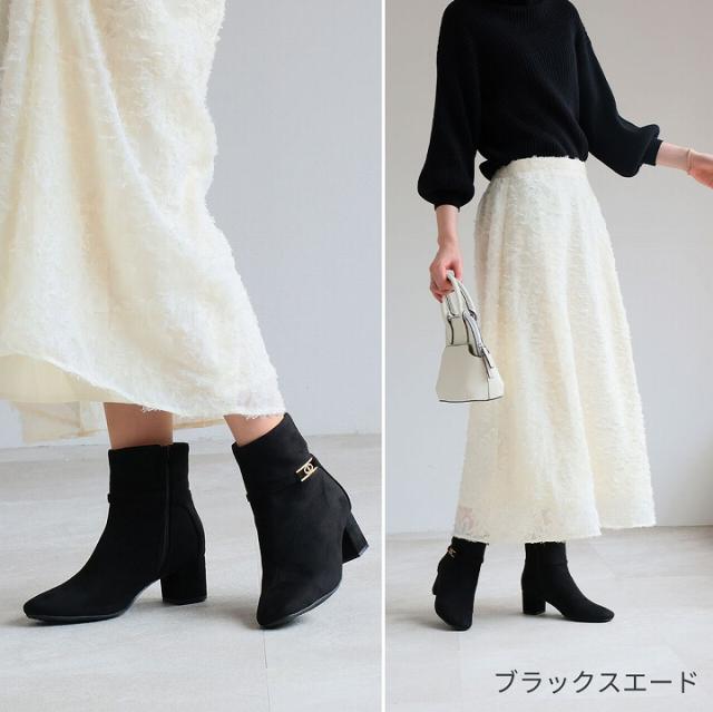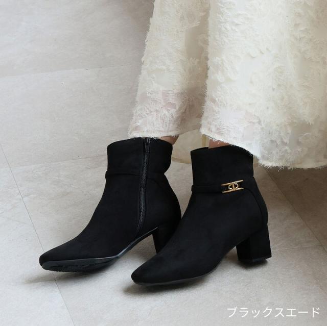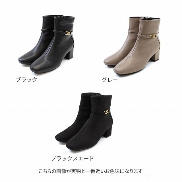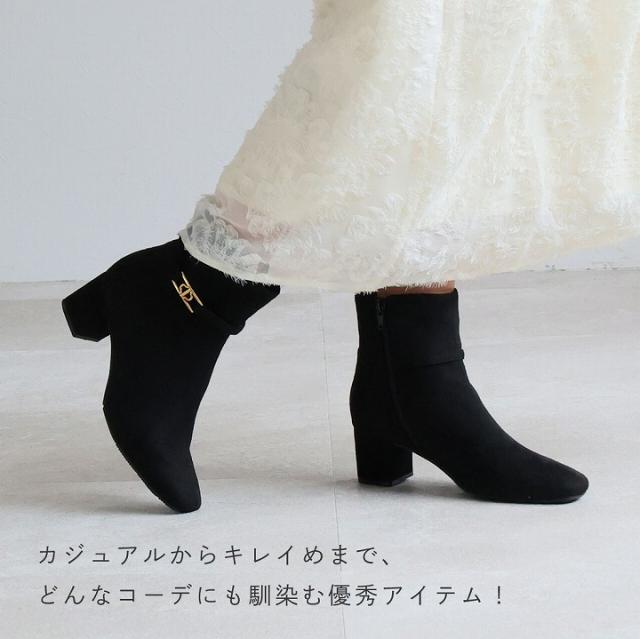 ブーツ レディース ショートブーツ モチーフ チャンキーヒール 5.5cm 太ヒール 痛くない 歩きやすい 疲れない ブラック 黒 グレー スエード 柔らかい 履きやすい 大きいサイズ 小さいサイズ 歩きやすい 走れる 疲れない 走れる 防寒 立ち仕事 オール 幅広 甲高 長時間 疲れない 外反母趾 22cm 22.5cm 23cm 23.5cm 24cm 24.5cm 25cm 25.5cm S M L LL かわいい 可愛い おしゃれ 秋 冬 秋冬 仕事 オフィス ビジネス お呼ばれ 20代 30代 40代 50代 旅行 帰省 レジャー Minkyme Minky me