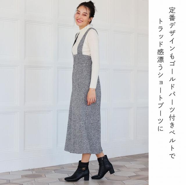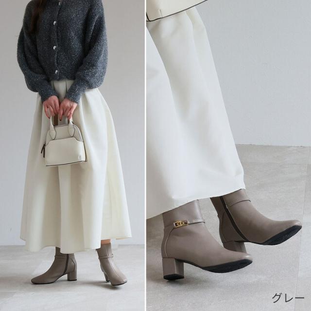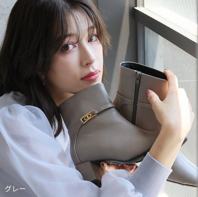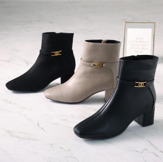 定番デザインもゴールドパーツ付きベルトでトラッド感漂うショートブーツに