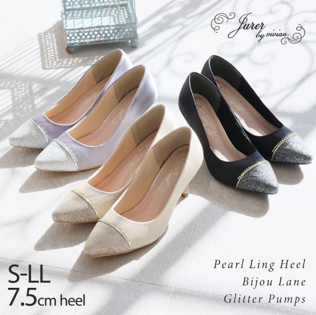 【MAX20%OFFクーポン】 パンプス 結婚式 痛くない 歩きやすい jurer VIVIAN ジュレ 二次会 パーティ セレモニー パール ビジュー 入学式 入園式 卒園式 卒業式