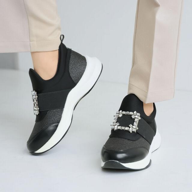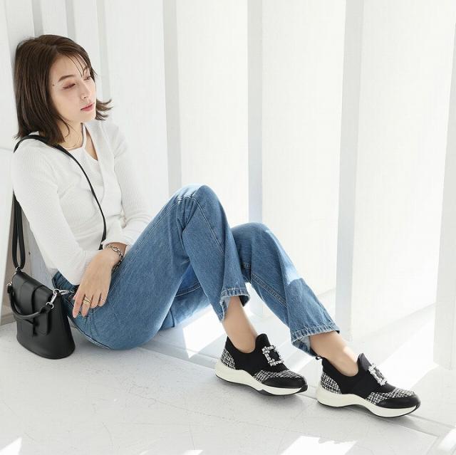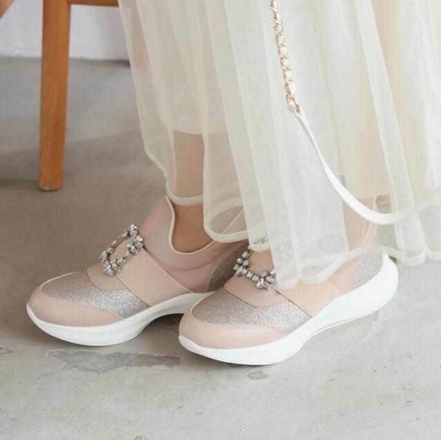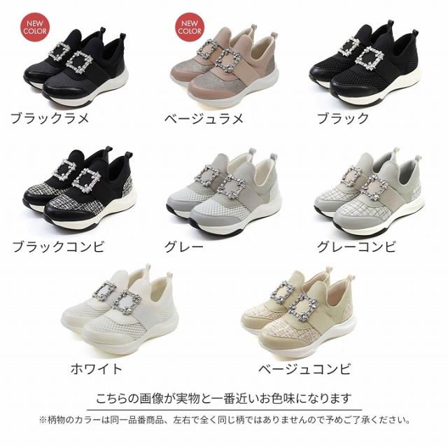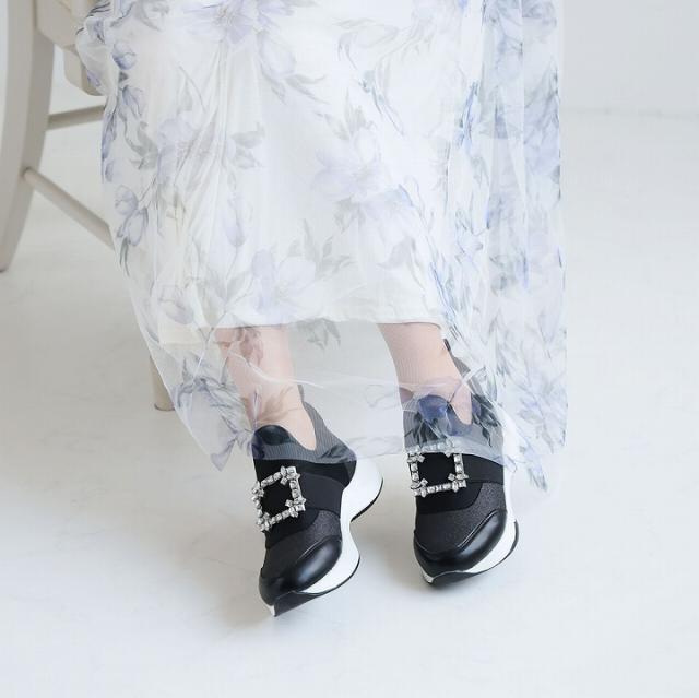 ビジューバックルゴムスリッポンスニーカー
