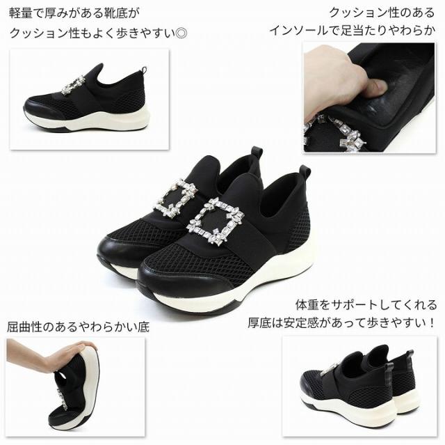 【全品10%OFFクーポン】厚底 スニーカー レディース スリッポン 春 スニーカー ダッドスニーカー 厚底 痛くない メッシュ ブラック 黒 白 ビジュー ZOZO レディーススニーカー 靴
