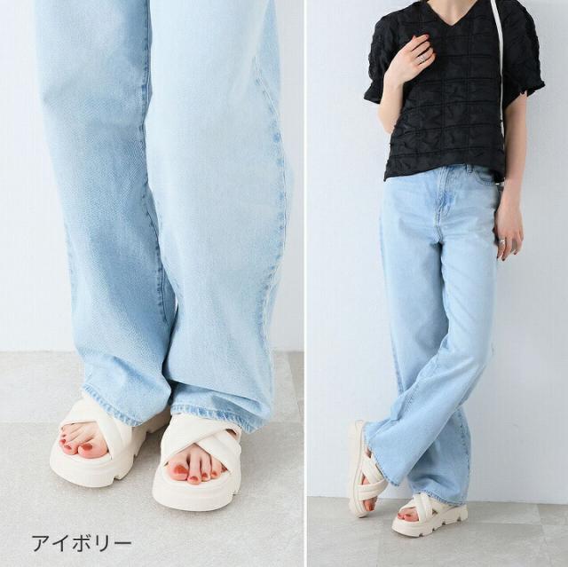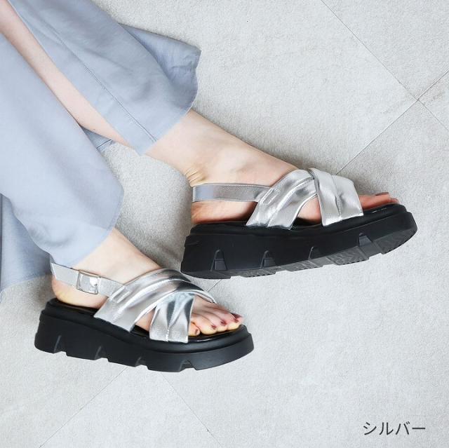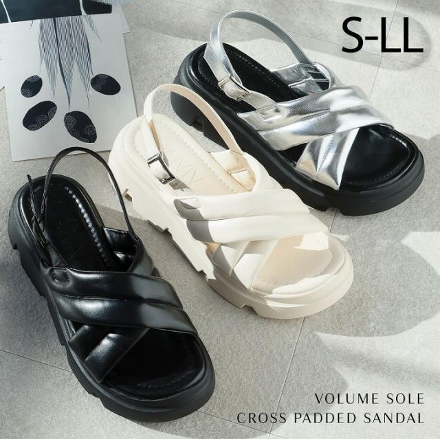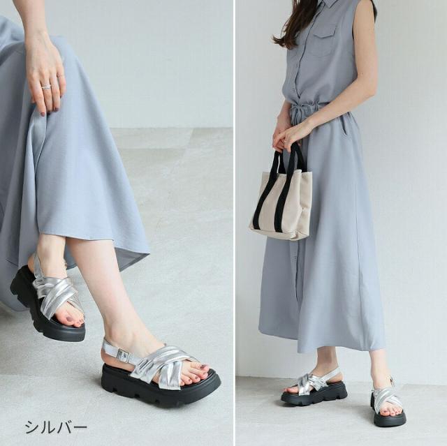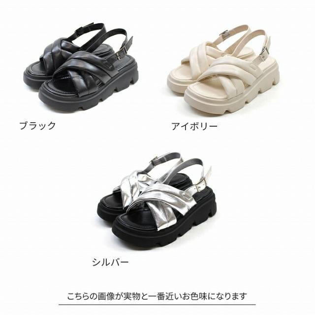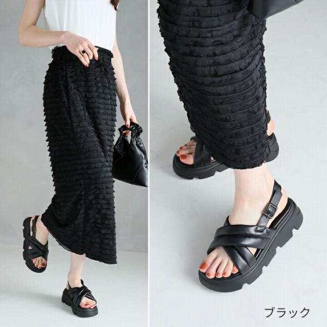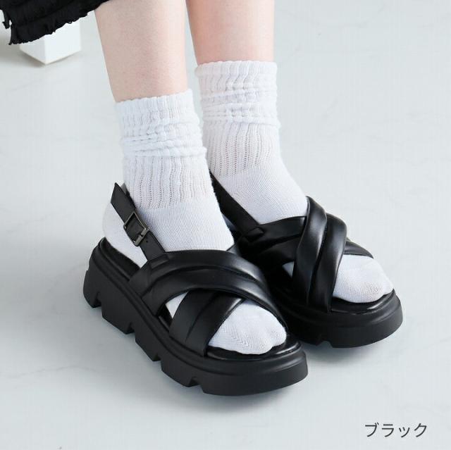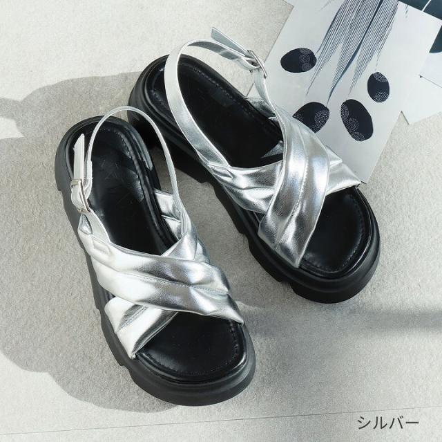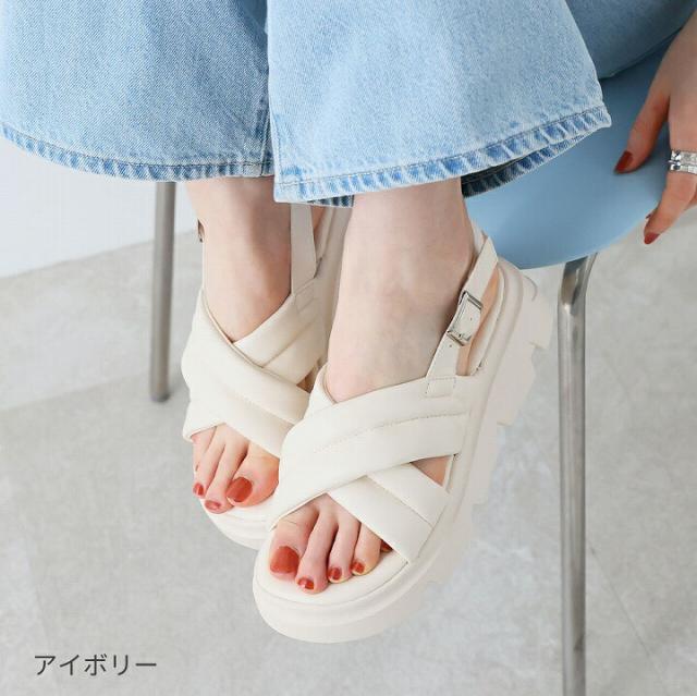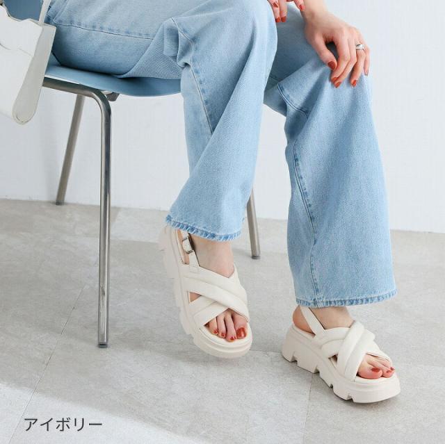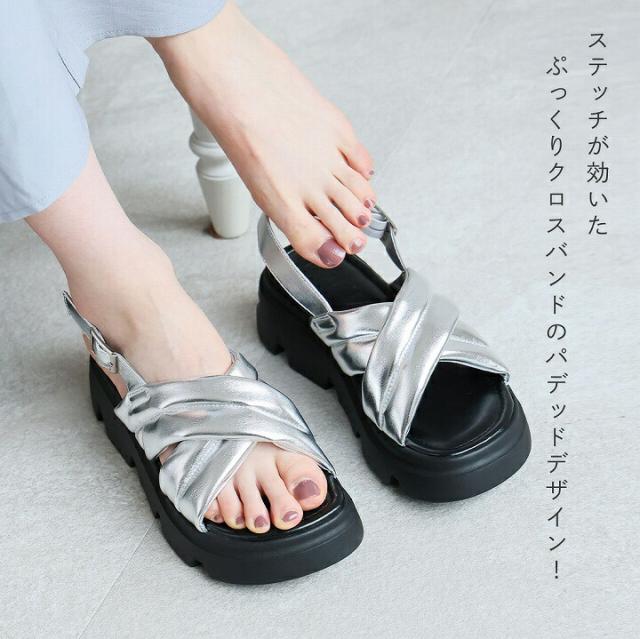 厚底クロスパデッドストラップサンダル