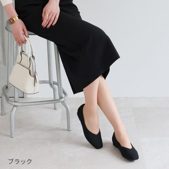・ローヒールでもトレンド感のあるスクエアトゥ×Vカットで甘くなりすぎない上品フォルム。