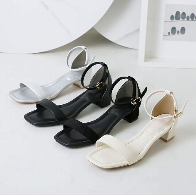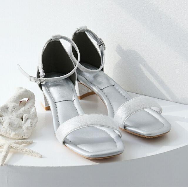 Vivian サンダル レディース アンクル ストラップ 4cm チャンキーヒール 太ヒール スクエアトゥ ブラック 黒 アイボリー 白 シルバー メタリック スエード 旅行 オフィス 通勤 痛くない 歩きやすい 疲れない キレイめ 22cm 22.5cm 23cm 23.5cm 24cm 24.5cm 25cm S M L LL 大きいサイズ 小さいサイズ 春 夏 10代 20代 30代 40代 50代 60代 Minkyme Minky me