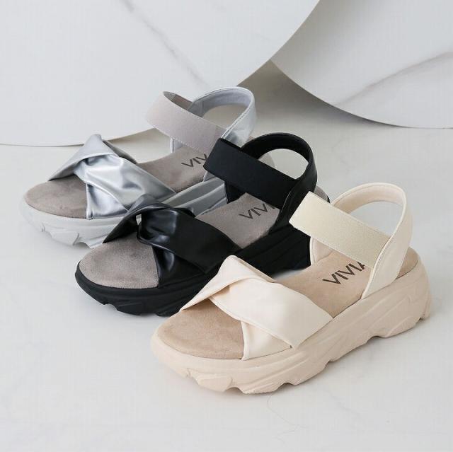 Vivian 厚底サンダル 厚底 サンダル レディース スポーツサンダル スポサン ゴム ゴムサンダル ブラック 黒 アイボリー 白 シルバー メタリック 痛くない 歩きやすい 疲れない キレイめ 22cm 22.5cm 23cm 23.5cm 24cm 24.5cm 25cm 25.5cm S M L LL 大きいサイズ 小さいサイズ 春 夏 通勤 オフィス 旅行 帰省 レジャー 10代 20代 30代 40代 50代 60代 Minkyme Minky me