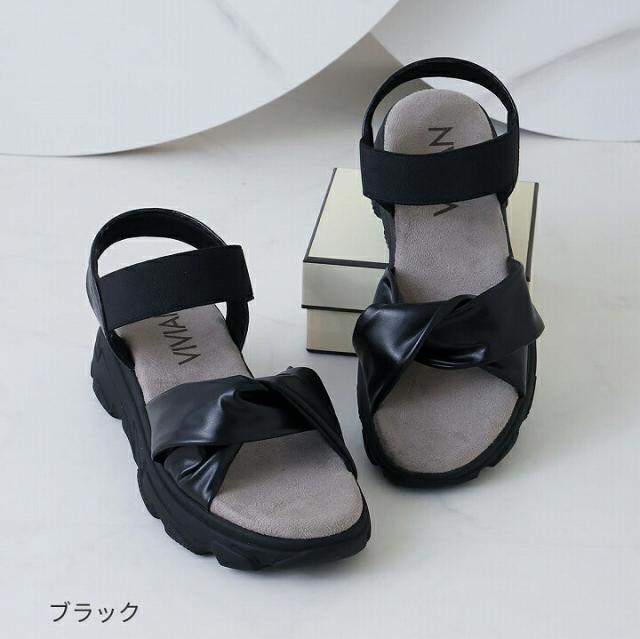 【全品10%OFFクーポン】履きごこちやみつき感激サンダル 厚底サンダル 厚底 サンダル レディース スポーツサンダル スポサン ゴム ゴムサンダル V45518SM VIVIAN ZOZO 黒 白 旅行