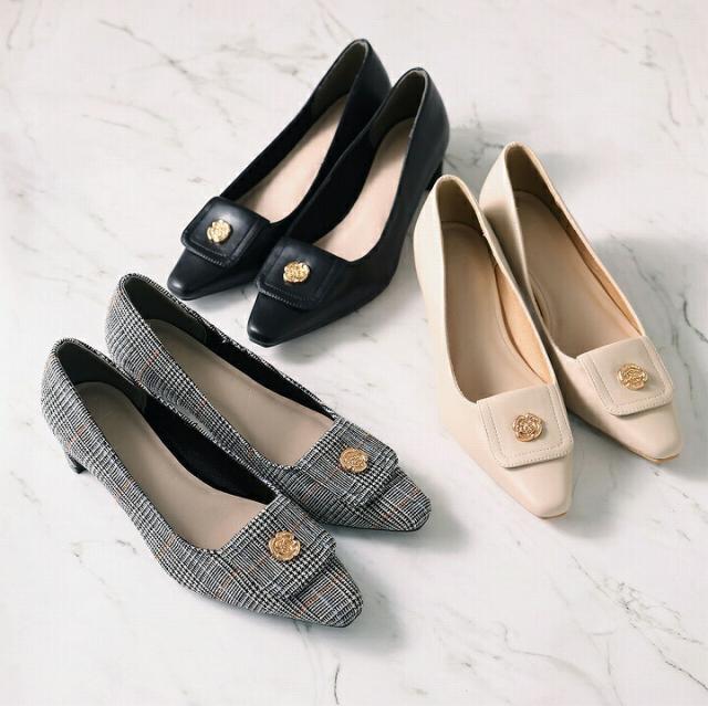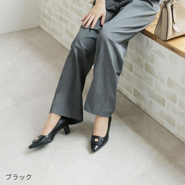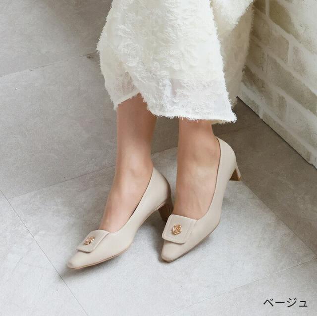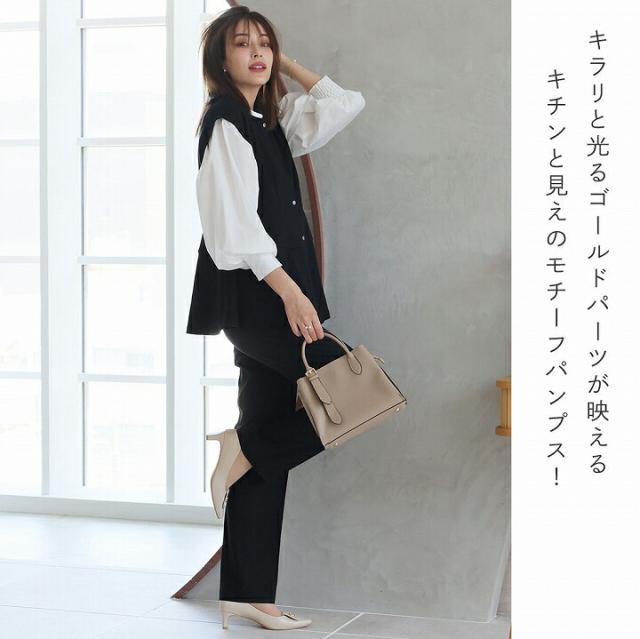キラリと光るゴールドパーツが映えるキチンと見えのモチーフパンプス!