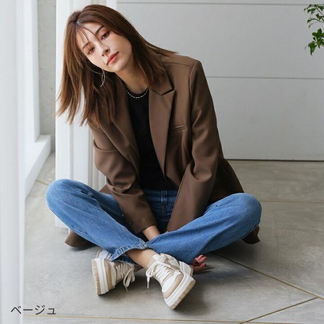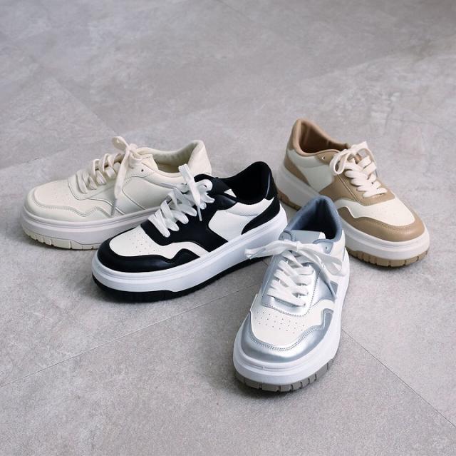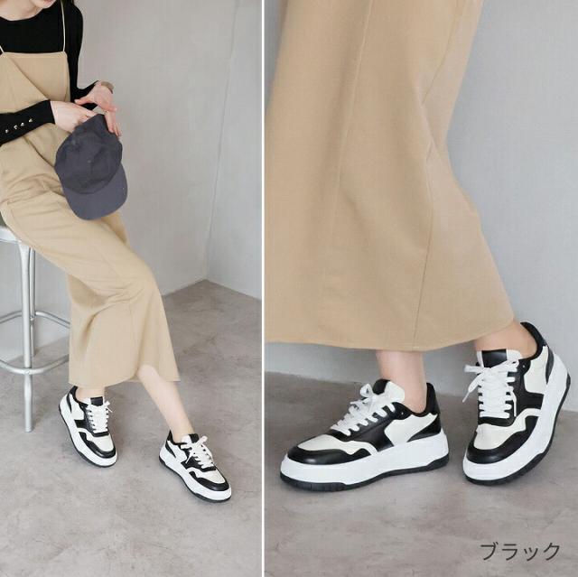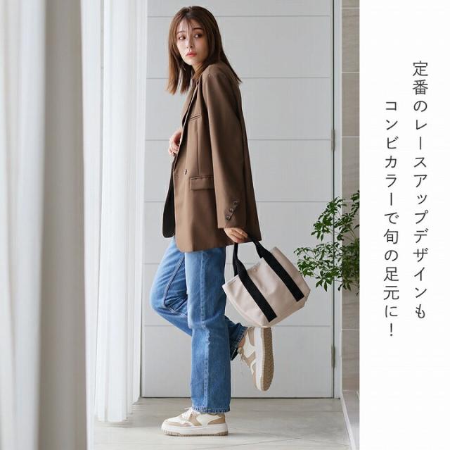 定番のレースアップデザインもコンビカラーで旬の足元に!