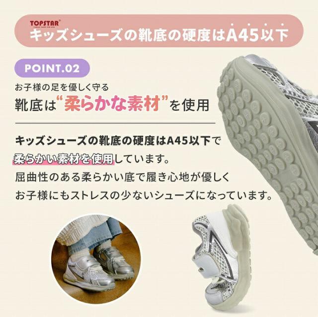 【全品10%OFFクーポン】キッズ シューズ TOPSTAR 14.0cm-19.0cm スニーカー キッズ ジュニア 子供靴 男の子 女の子 運動会 運動靴 マジックテープ メッシュ メタリック VIVIAN T6008AL
