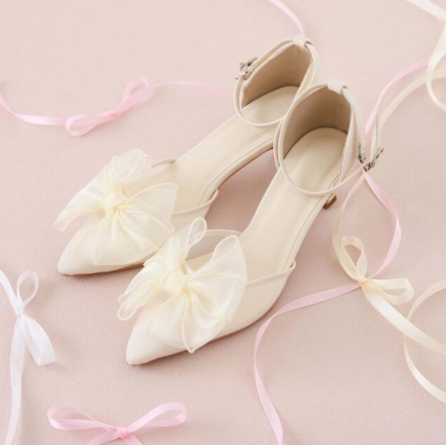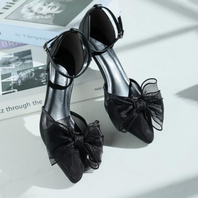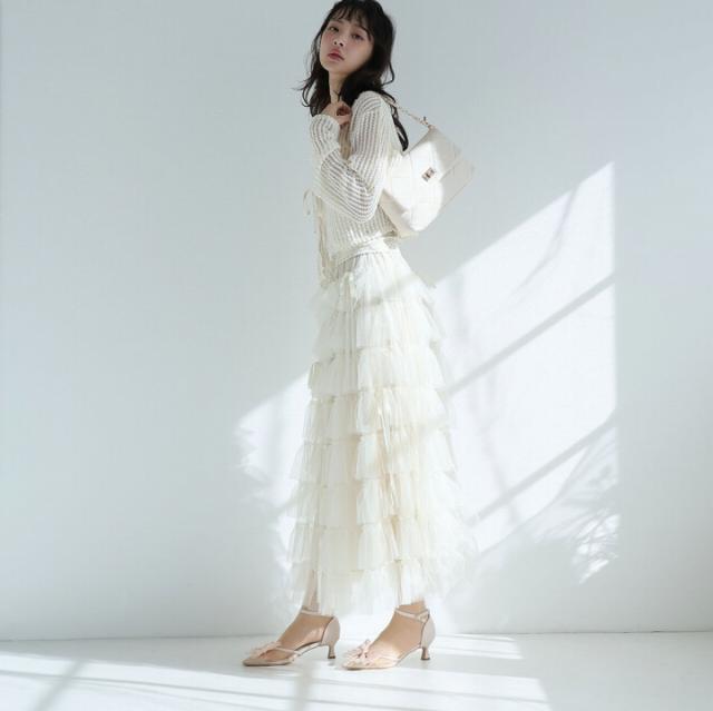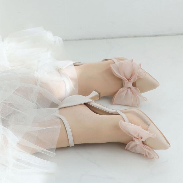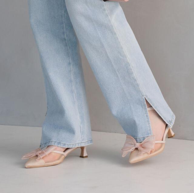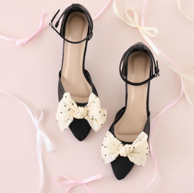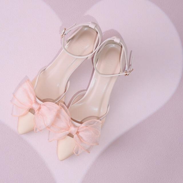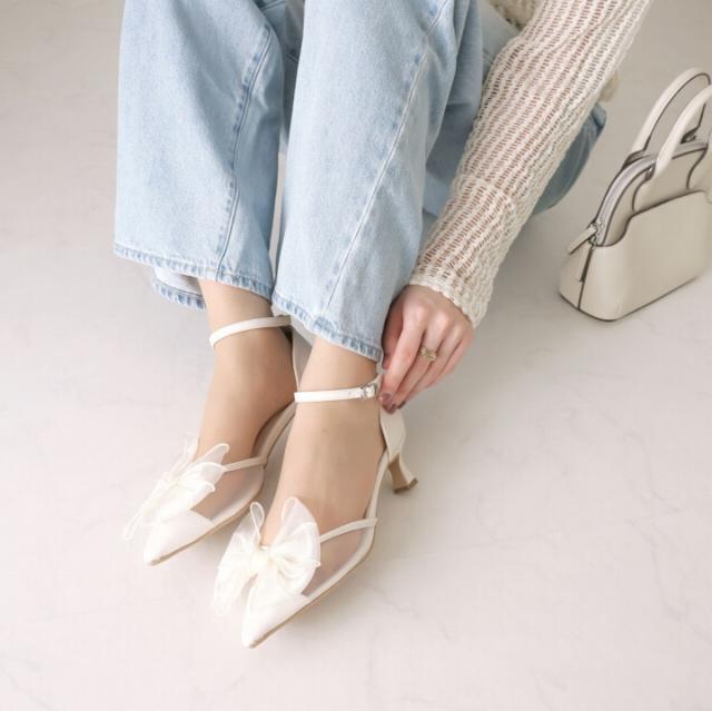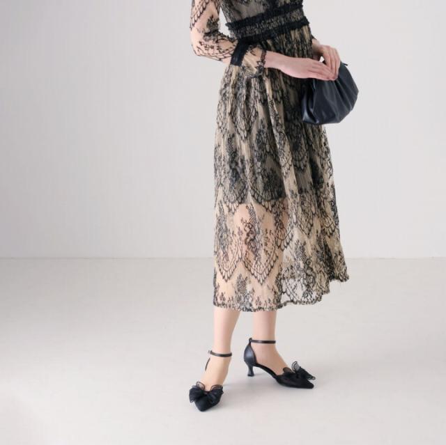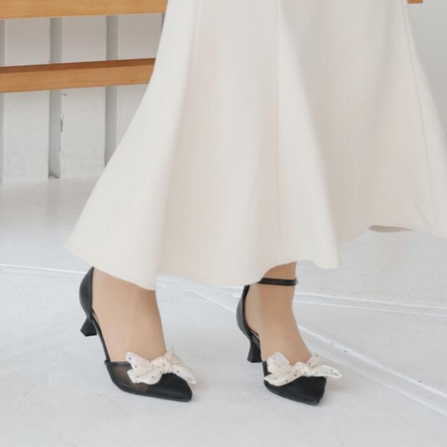 ラメ入りチュールリボンが目を引く透け感のあるシアーセパレートパンプス!