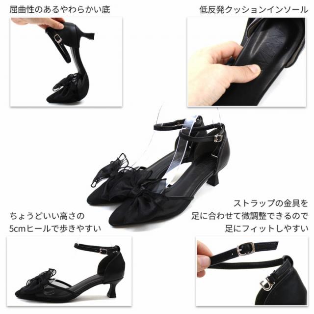 【店内全品10%OFFクーポン】パンプス 痛くない 歩きやすい 春 結婚式 リボン セパレート 5cmヒール アンクルストラップ お呼ばれ セレモニー 冠婚葬祭 パーティ V3320AL ZOZO チュール