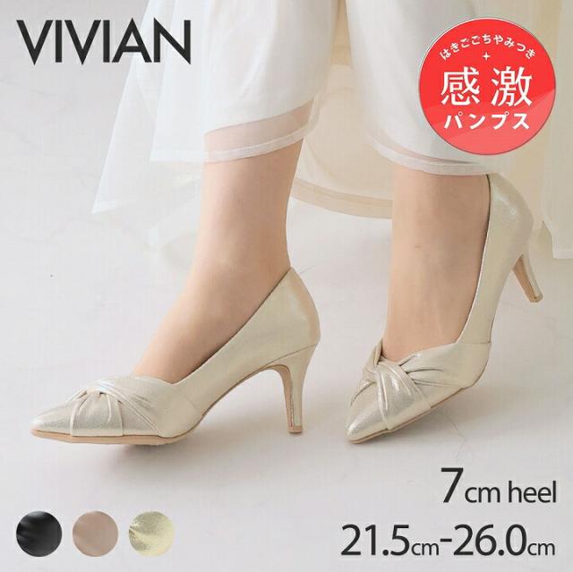 【全品10%OFFクーポン】感激パンプス パンプス 痛くない 歩きやすい 外反母趾 リボン 7cm ヒール 冠婚葬祭 結婚式 ブラック 黒 ベージュ V3772AL VIVIAN ZOZO 結婚式 セレモニー