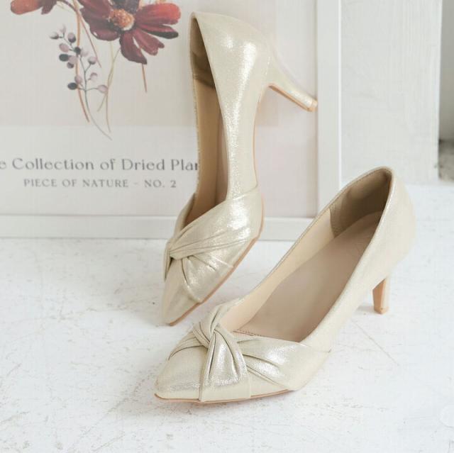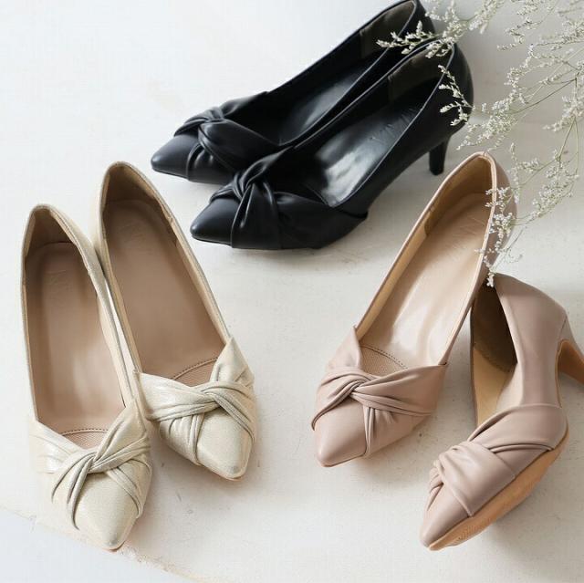ポインテッドトゥターバンリボン7cmヒール感激パンプス