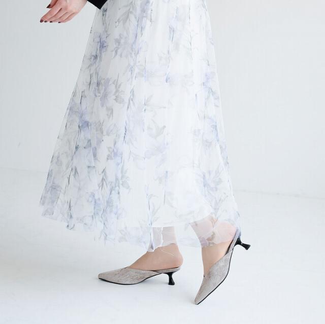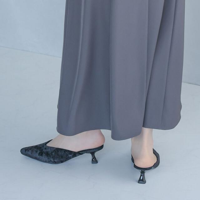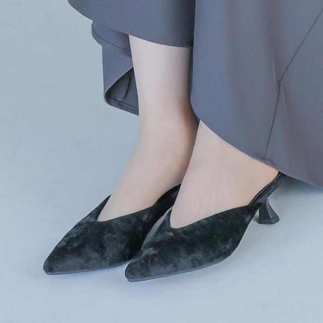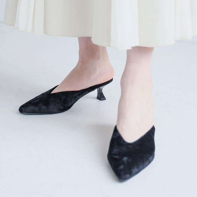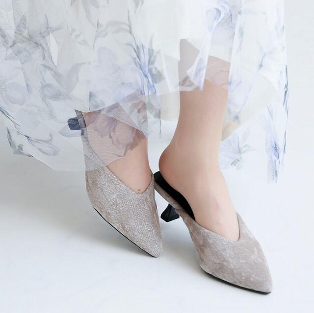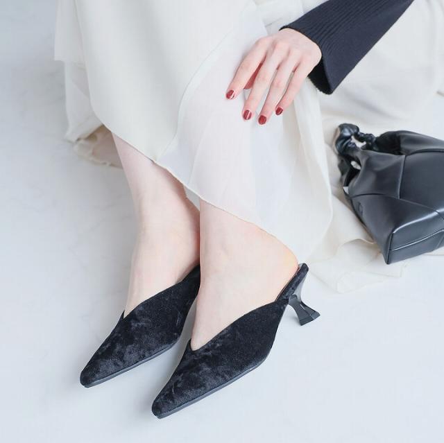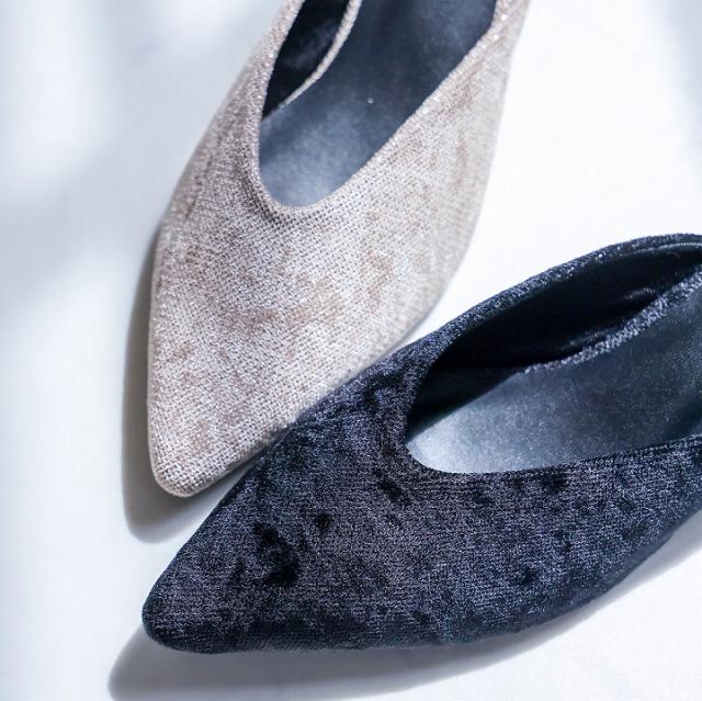 キラキララメ入りベロアミュールパンプス