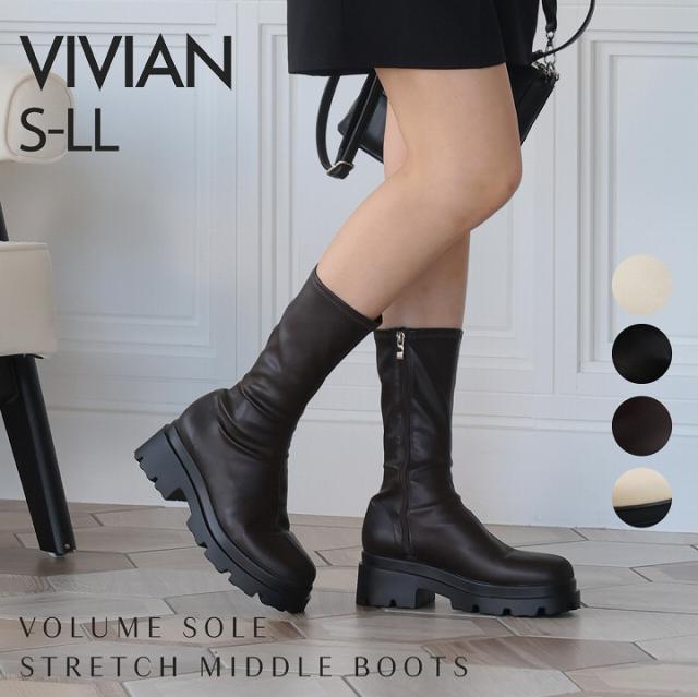 ブーツ レディース23年秋冬新作 厚底 ストレッチ ミドルブーツ ハーフ丈 ミドル丈 ロングブーツ トラックソール 6cmヒール ボリュームソール vivian ブーツ ソックスブーツ zozo ゾゾタウン 太ヒール チャンキーヒール 痛くない 履きやすい 柔らかい 滑らない 締め付けない 大きいサイズ 小さいサイズ カジュアル 旅行 お出かけ 帰省 ドライブ 普段使い ローヒール ブラウン モカ グレージュ ベージュ ホワイト アイボリー 黒 茶色 かわいい 可愛い おしゃれ カワイイ スムース調 スエード調