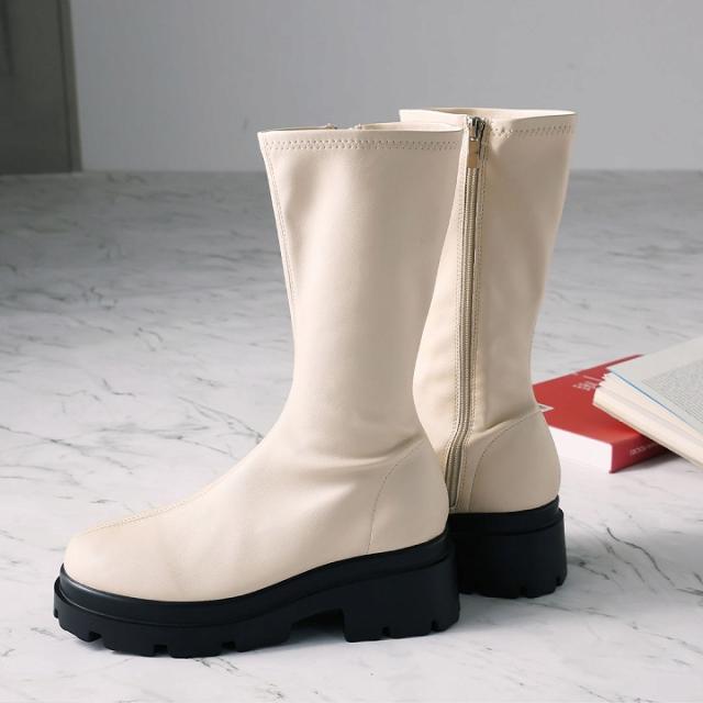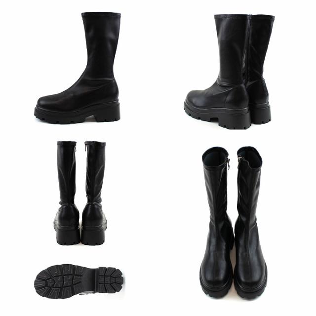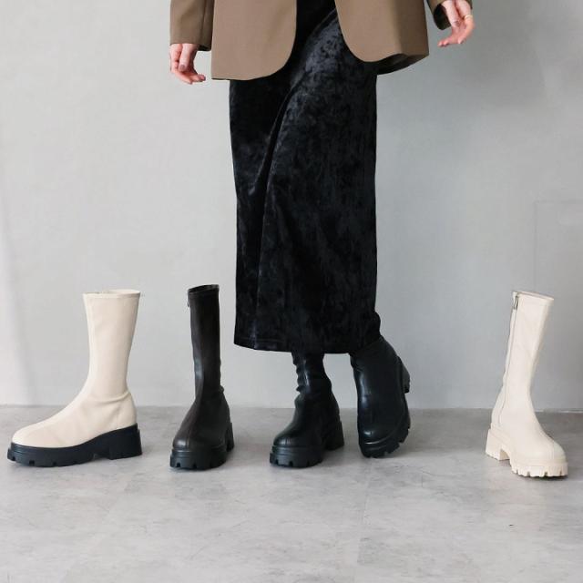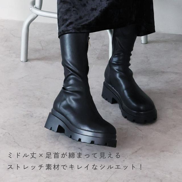厚底ストレッチミドルブーツ