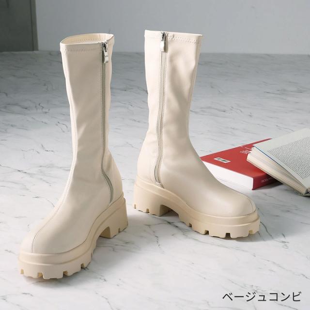 人気の厚底ストレッチブーツにワントーンのベージュコンビが仲間入り!