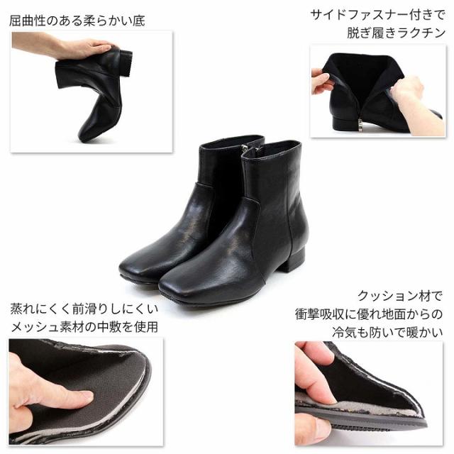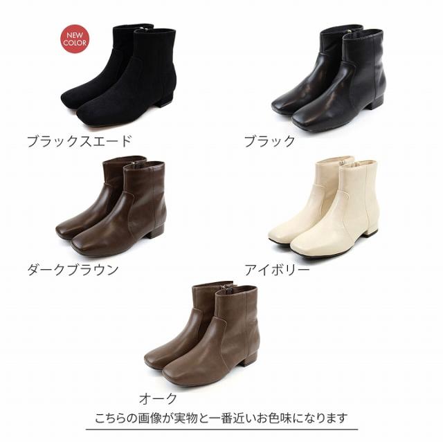 ブーツ レディース スクエアトゥ ローヒール ショートブーツ 2.5cmヒール 22.0 25.5 ブラック ダークブラウン ブラウン オーク オフィス 通勤