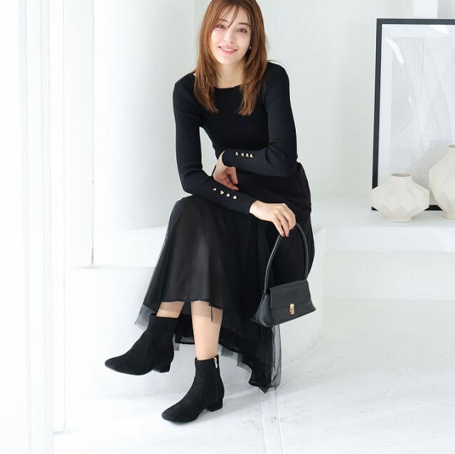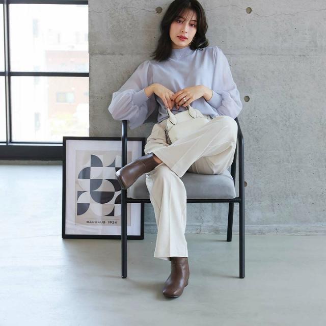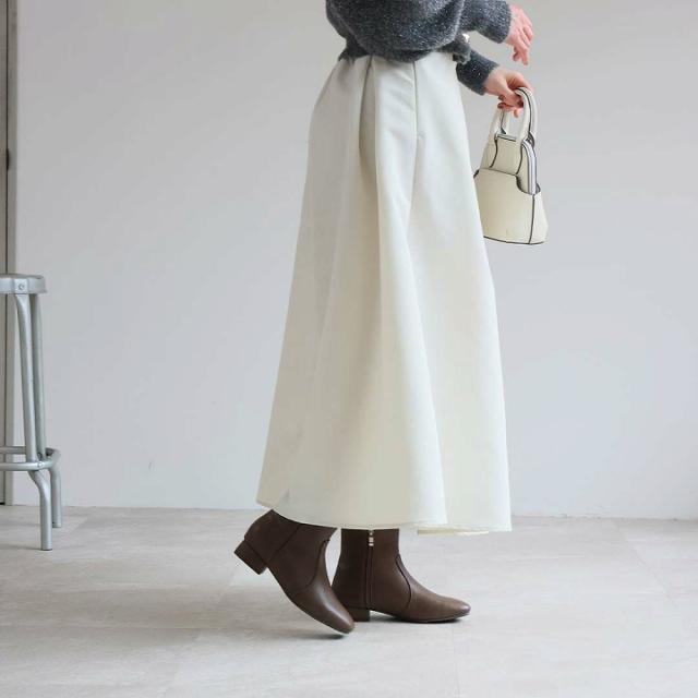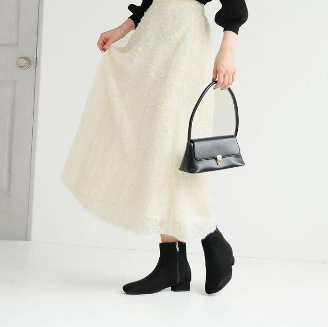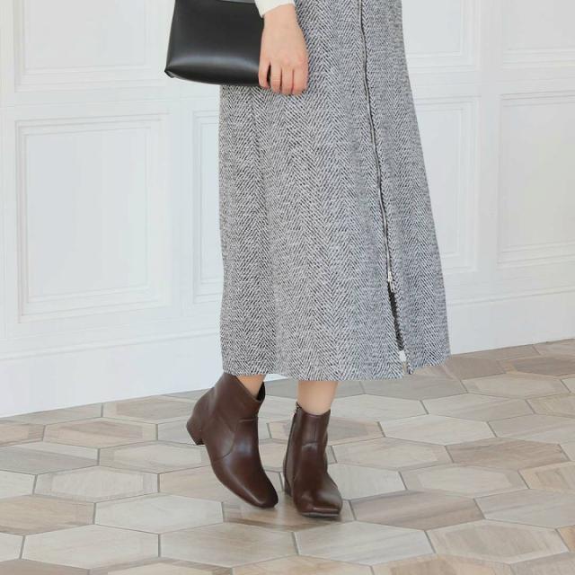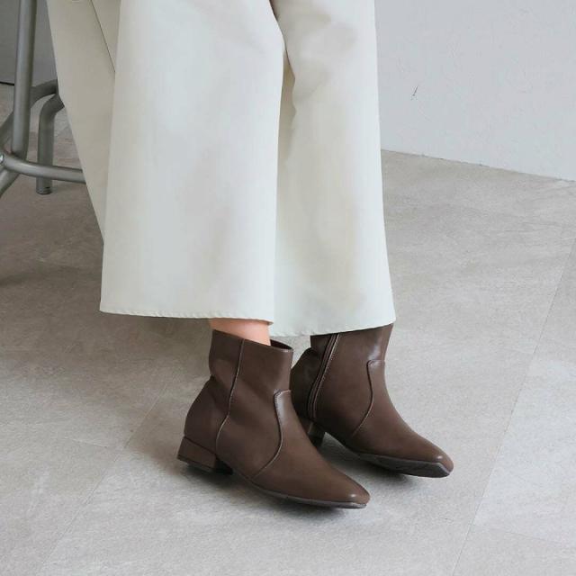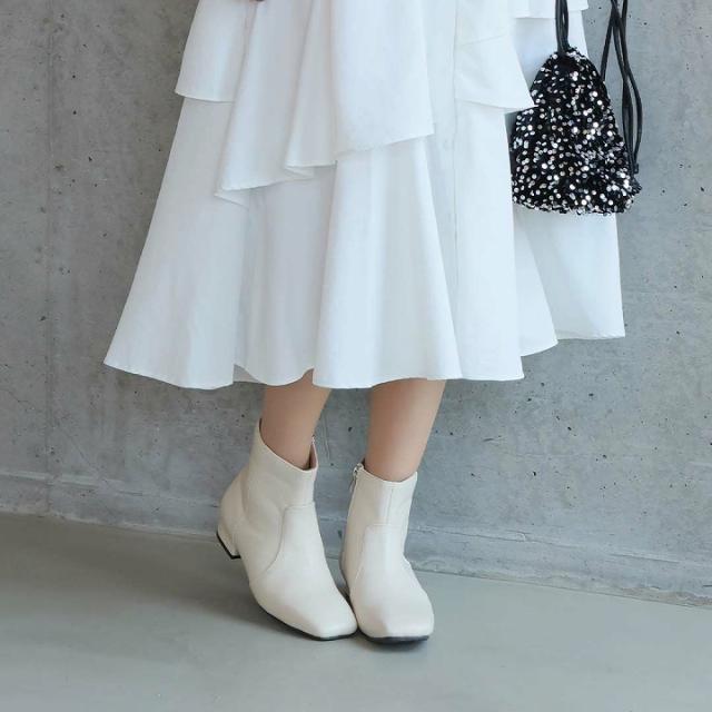 ・スクエアトゥ×ローヒールで甘くなりすぎないスッキリとしたシルエットのショートブーツ