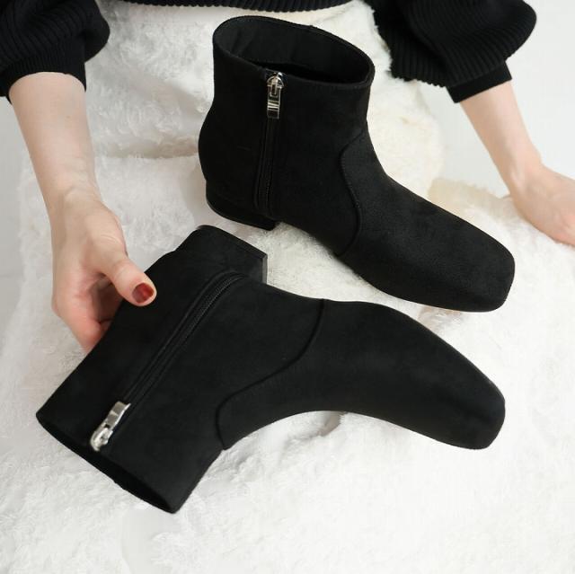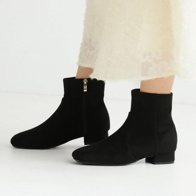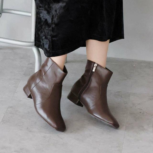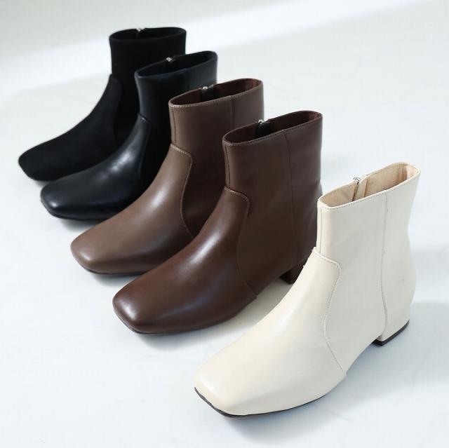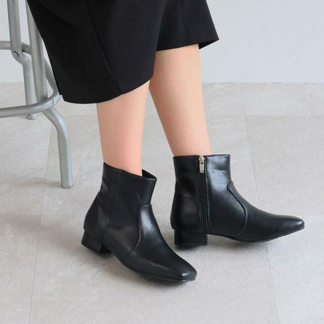 スクエアトゥシンプルローヒールショートブーツ