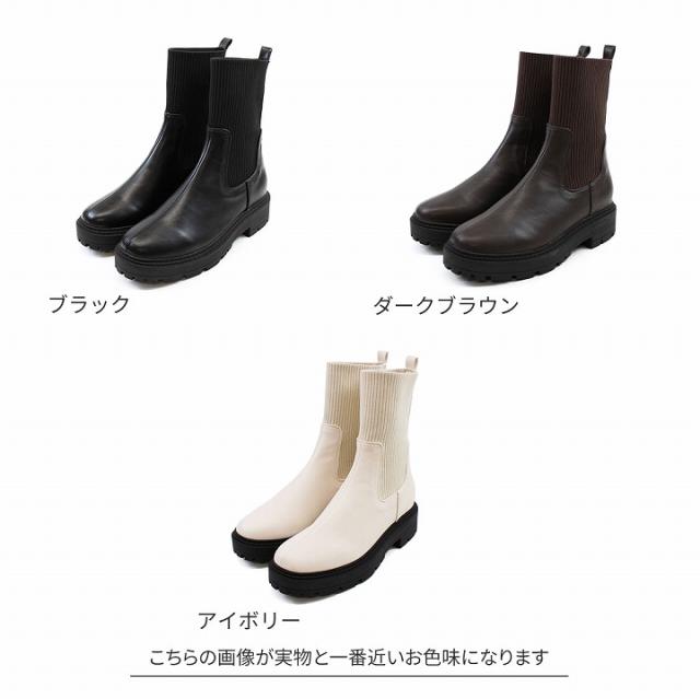 【全品10%OFFクーポン】 ブーツ レディース 秋新作 厚底 秋冬新作 ニットブーツ ミドル丈 ショートブーツ 厚底ブーツ 厚底 トラックソール ボリュームソール ZOZO 防寒 20代 30代 40代 50代
