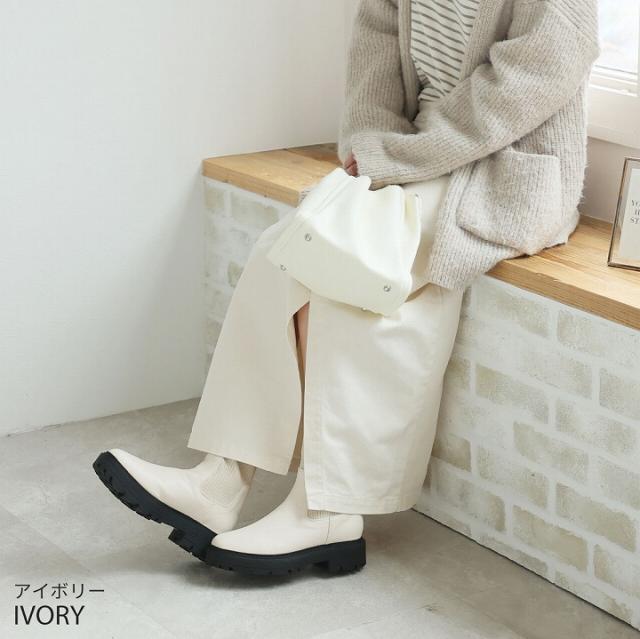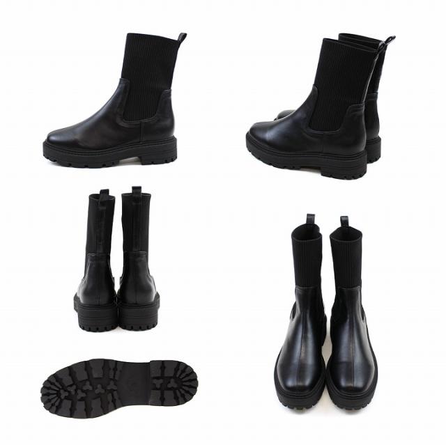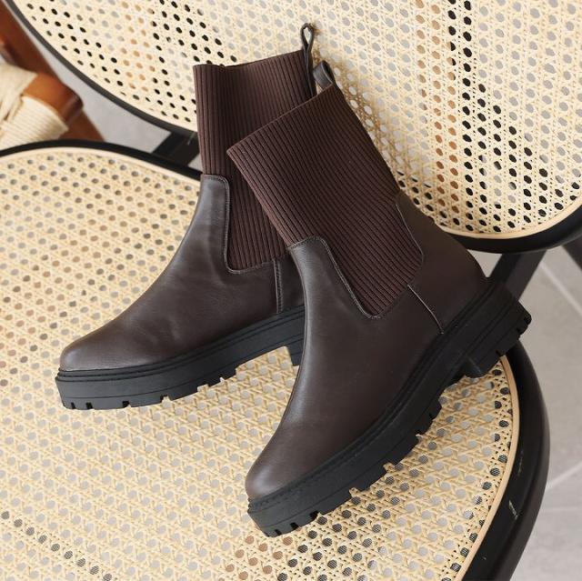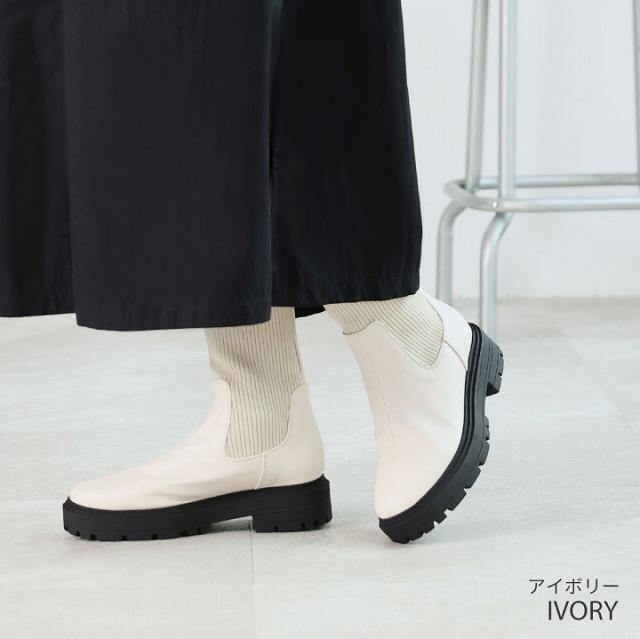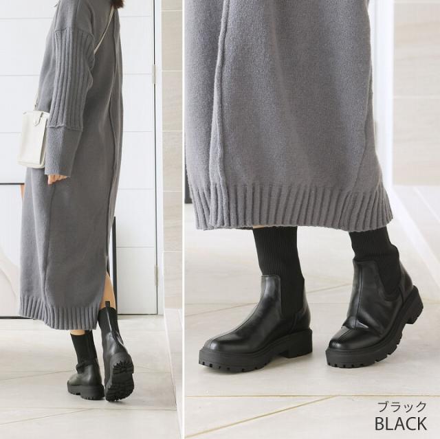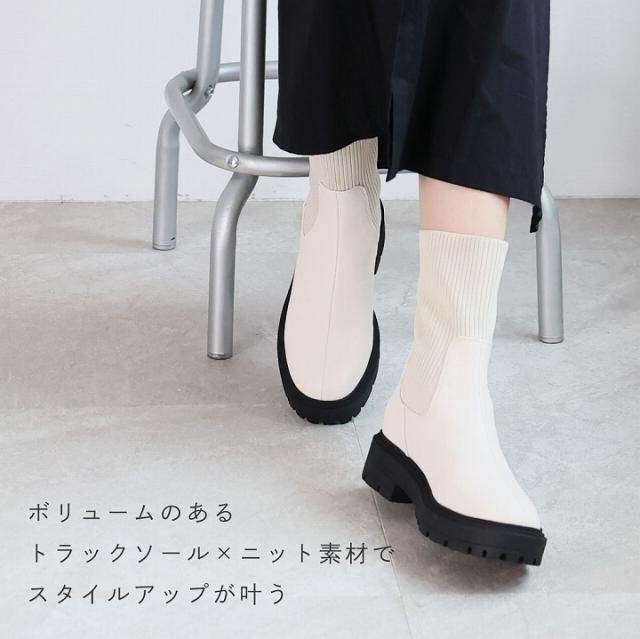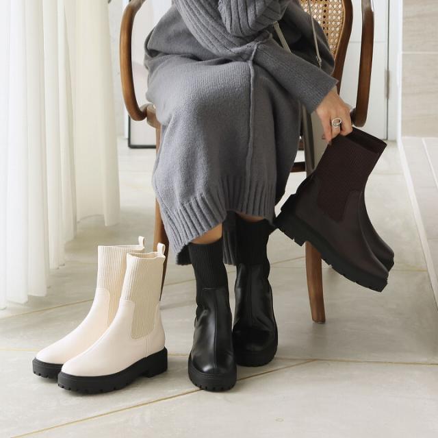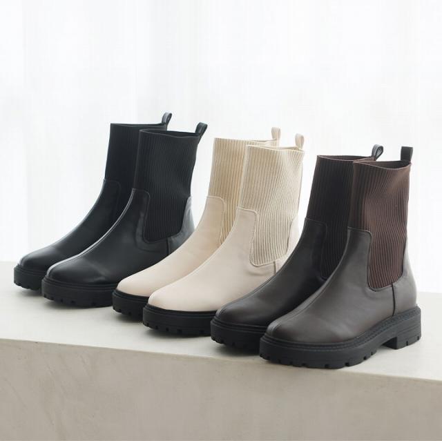 スムース素材にリブニットをドッキングした足元も盛れる厚底ニットブーツ